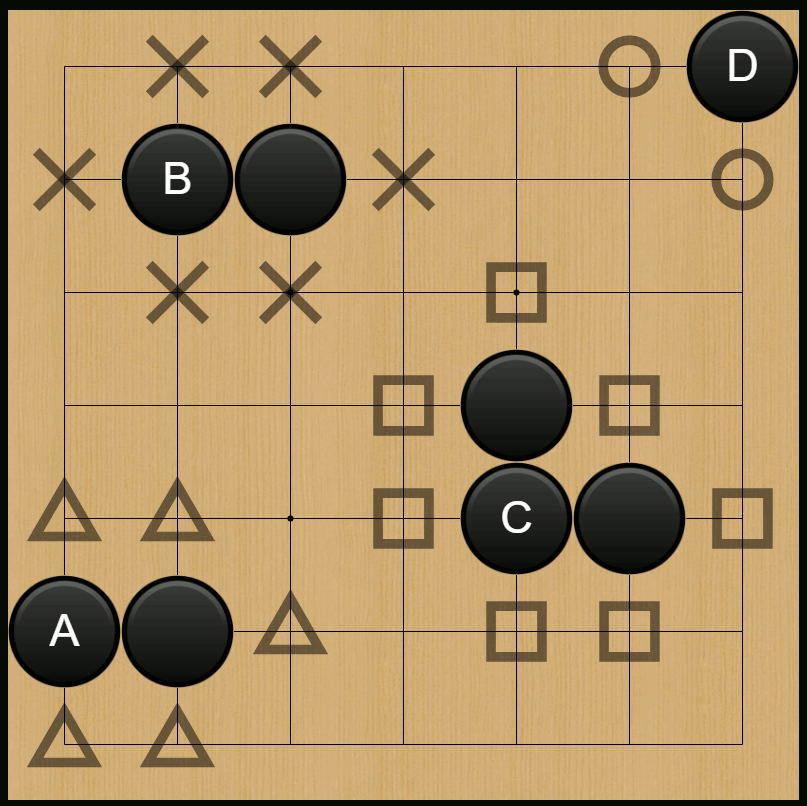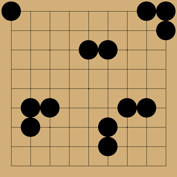 Las piedras comienzan con un número de lugares vacíos adyacentes (llamados libertades). Las piedras del mismo color comparten libertades.