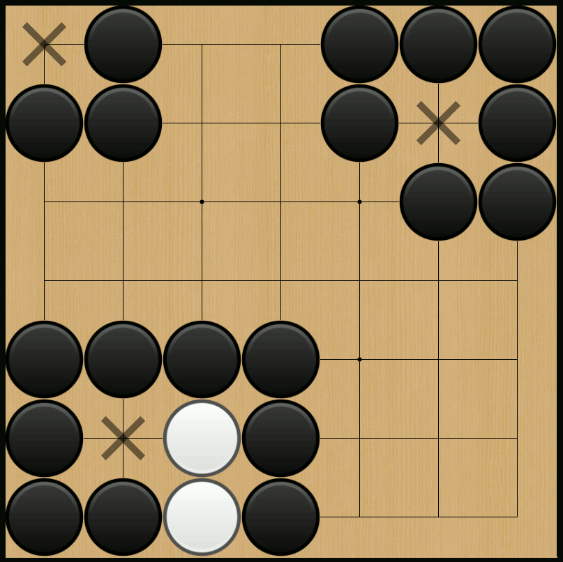 Si una piedra o un grupo de piedras es rodeado totalmente (queda sin libertades), es capturado y retirado del tablero.